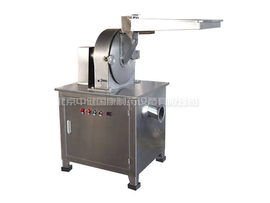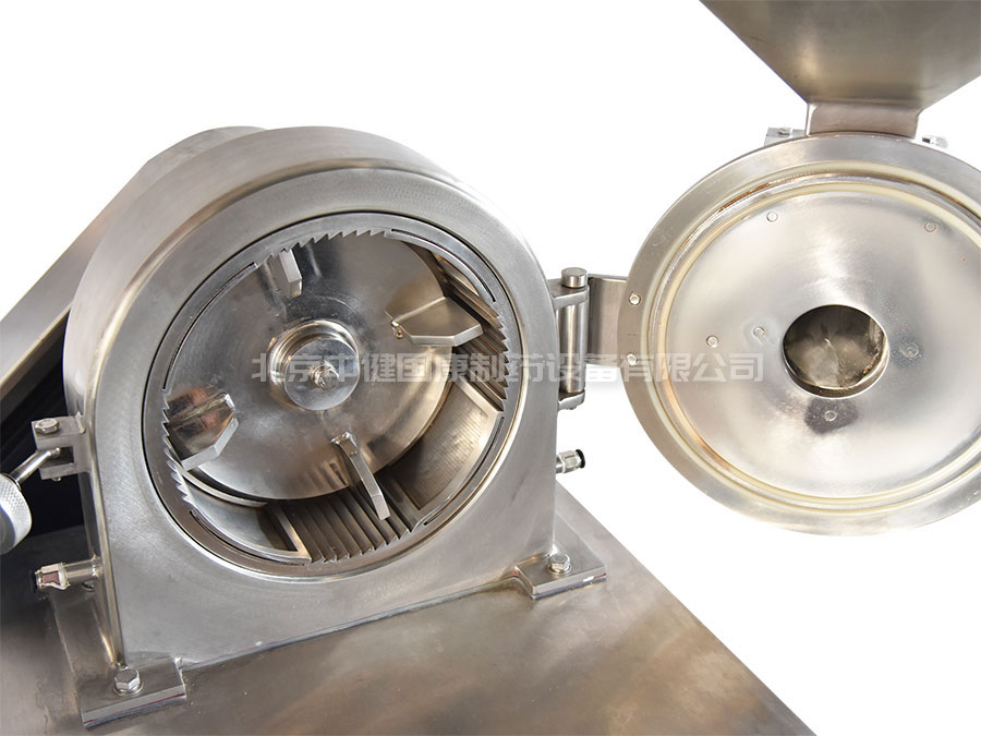 本機(jī)采用了風(fēng)輪式高速旋轉(zhuǎn)刀,定刀進(jìn)行沖擊、剪切研磨,粉碎時機(jī)腔內(nèi)產(chǎn)生了強(qiáng)力的氣流,把粉碎室的熱量和成品一起從篩網(wǎng)流出,粒度大小通過更換篩網(wǎng)獲得。