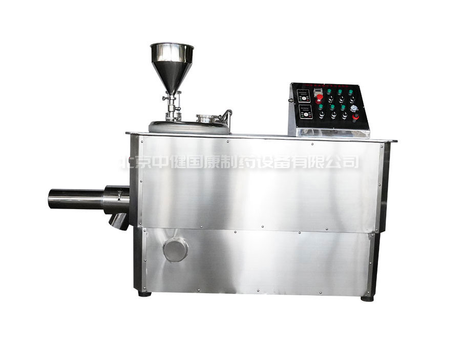 粉體物料與粘合劑在圓筒形容器中由底部混合漿充分混合成濕潤軟材,然后由側(cè)置的高速粉碎槳切割成均勻的濕顆粒。
